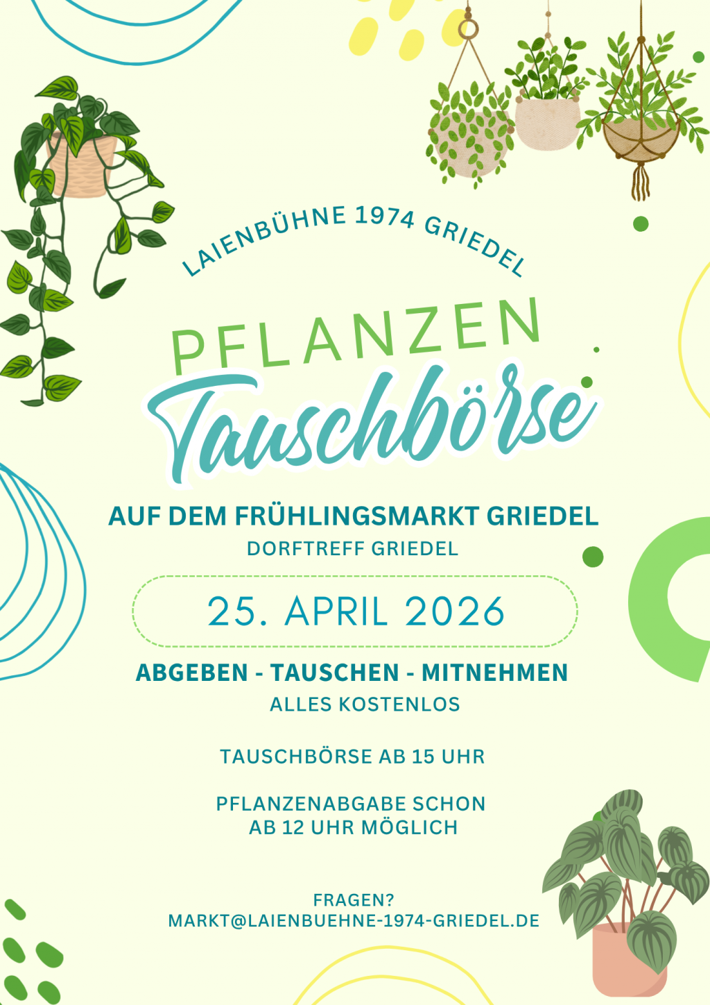 Ihr habt zu viele Pflanzen angezogen und wisst nicht, wohin mit dem Überschuss? Dann seid ihr bei uns genau richtig! Im Rahmen des Griedeler Frühlingsmarktes veranstalten wir, die Laienbühne Griedel,[…]