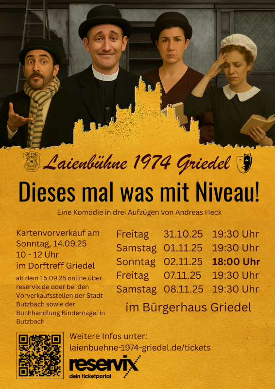 Nach Jahren voller schlüpfriger Pointen, frecher Bauern und amouröser Verwirrspiele wagt die Laienbühne Griedel im Jahr 2025 das scheinbar Unmögliche: Kultur mit Anspruch!